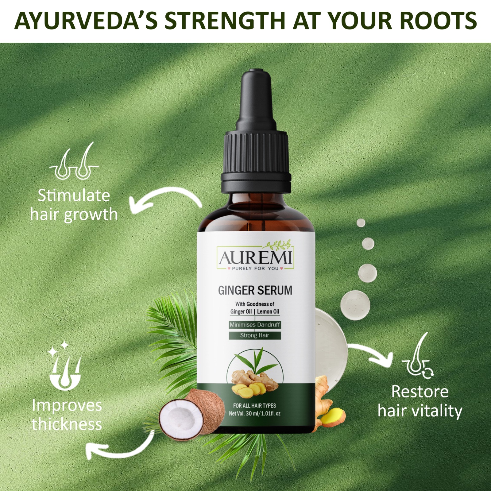 Auremi Ginger Hair Serum | Lightweight Anti-Hair Fall Serum with Peptides & Herbal Extracts for Stronger Roots, Smooth Shine & Healthy Scalp